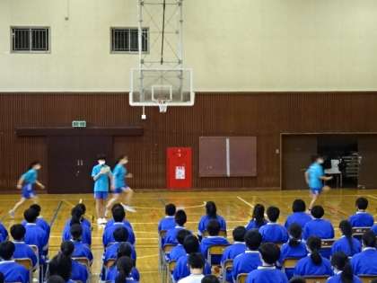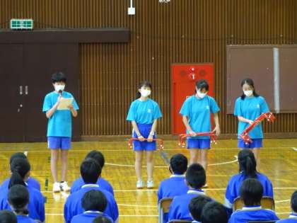 1年生に向けた一中ガイダンスです。部活動の紹介です。陸上部。