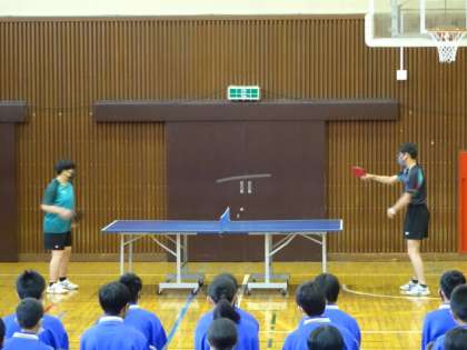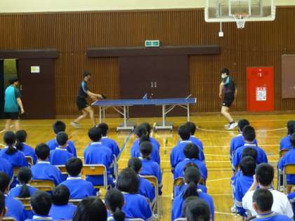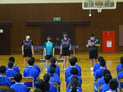 1年生に向けた一中ガイダンスです。部活動の紹介です。卓球部。