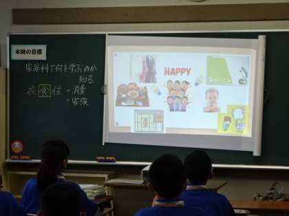 1年3組、家庭科。「家庭科で何を学ぶのか知る」