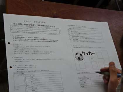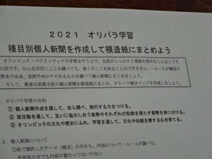 3年生の総合的な学習の時間。2021オリパラ学習、種目別個人新聞を作成して模造紙にまとめよう。