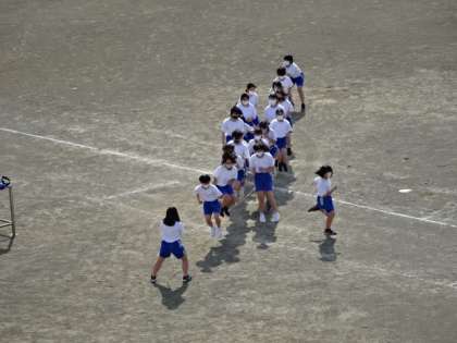 2年3組、体育。大繩に挑戦。気持ちを1つに!