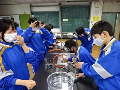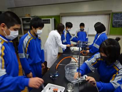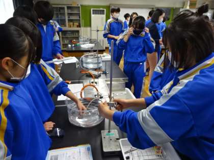 2年1組、理科。「炭酸水素ナトリウムの熱分解」