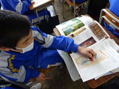 2年4組、美術。「美」しく、つくる・感じるための「術」を学ぼう!