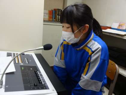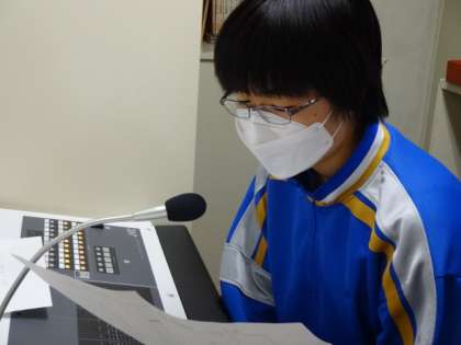 時間が前後していますが、今朝の生徒会朝礼(放送)の様子です。生徒会長や専門委員長、体育大会実行委員長が話をしました。