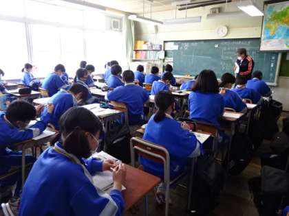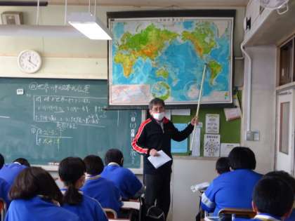 2年2組、社会。「世界の中の日本の位置」