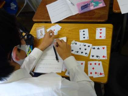 3年1組、理科。「遺伝のモデル実験 植物を育てずに遺伝子の伝わり方を調べるにはどうすればよいか」
