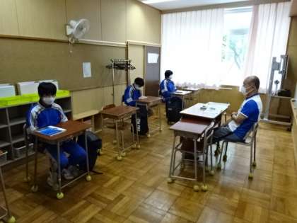 「新型コロナウイルスの恐い部分は、感染だけでなく、偏見や差別だと言われています。一人一人が優しい気持ちで正しい行動をしてください。一中の集団の力が試されるのは、今、これからです。不安や心配は先生たちに話してください。みんなで、一人一人が過ごしやすい学校を作っていきましょう」