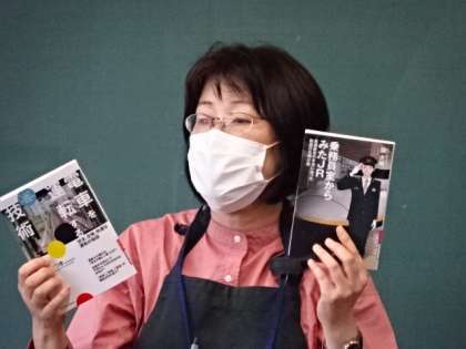 学校司書のブックトーク。「育ちすぎたタケノコでメンマを作ってみた」「秘密のノート」「乗務員室からみたJR」「電車を運転する技術」他2冊。合計9冊の本の紹介でした。全て図書室にあります。ぜひ読んでください。