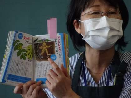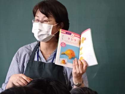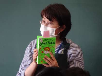学校司書のブックトーク。今日紹介していただいた本は「あやしい植物図鑑」「みかんアート」「からだのなかのびっくり事典」