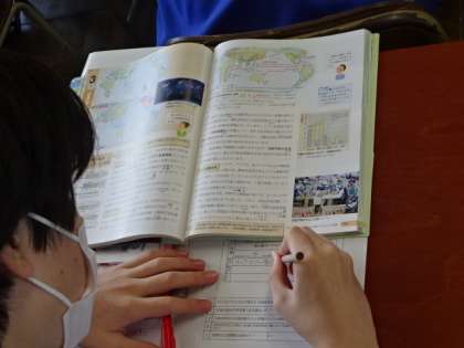 2年1組、社会。「世界から見た日本の資源・エネルギーと産業」