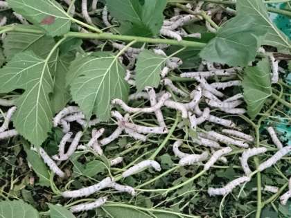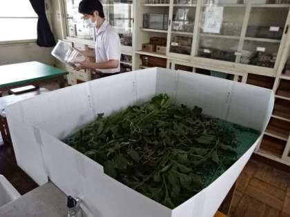 理科室に避難しました。すくすく育っています。もうすぐ繭を作り始めるのでしょうか。それともまだまだ大きくなるのでしょうか。