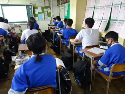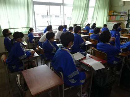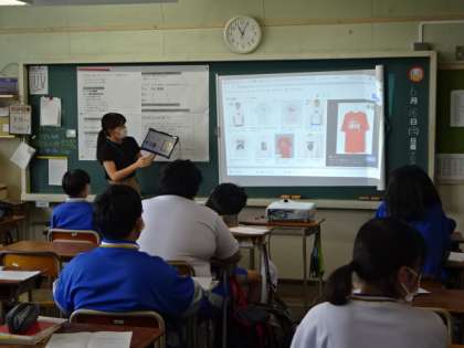 2年2組、家庭科。「T.P.Oにあったコーディネートを考えよう」