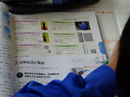 3年2組、理科。「日常生活と電池」