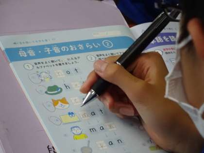 1年3組、英語。「母音・子音」