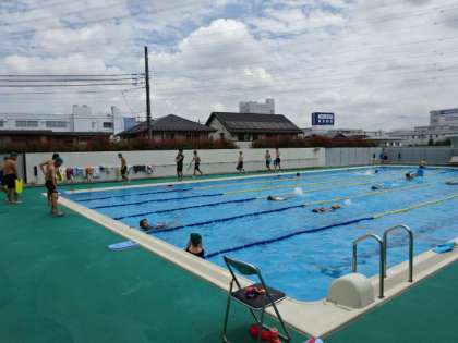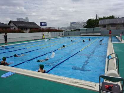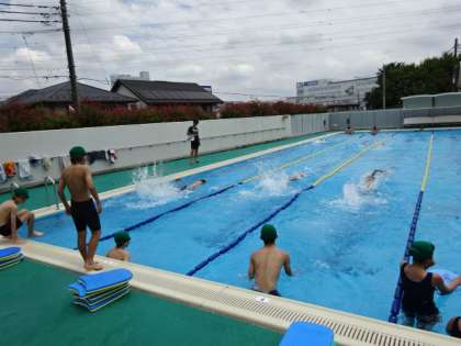 1年5組、体育。水泳です。1年5組は唯一単独クラスで体育の授業を行っています。プールを貸し切り。