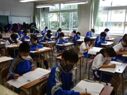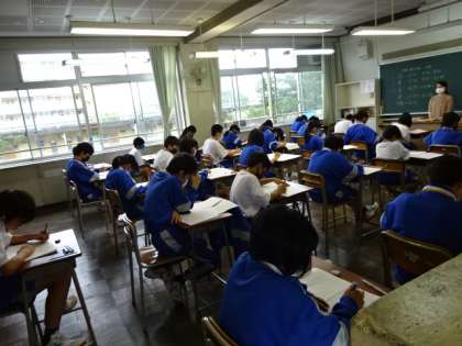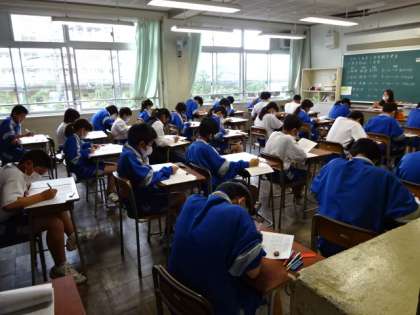 今日から3日間は1学期期末考査です。1時間目の国語が始まりました。1年生。