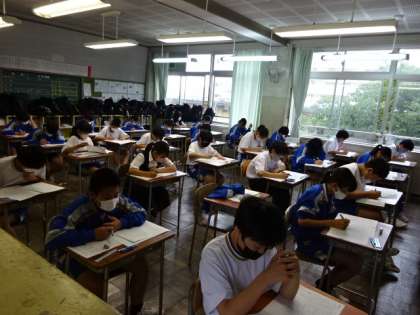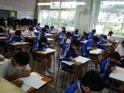 今日から3日間は1学期期末考査です。1時間目の国語が始まりました。1年生。