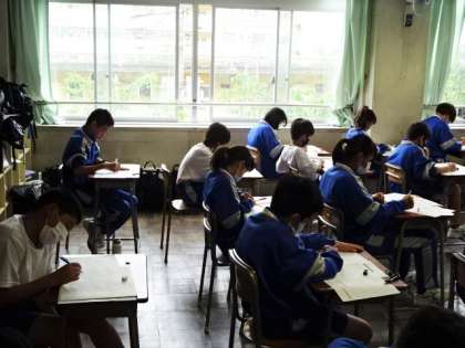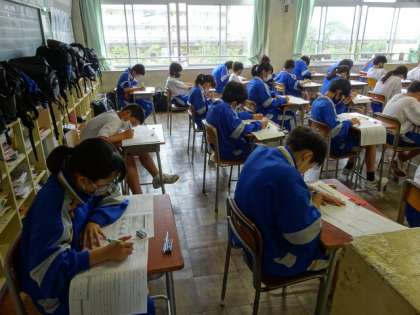 期末考査最終日になりました。1時間目の社会のテストです。1年3組。