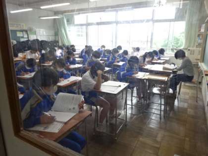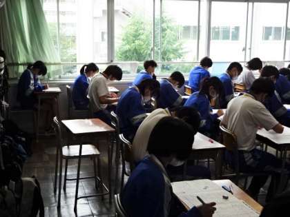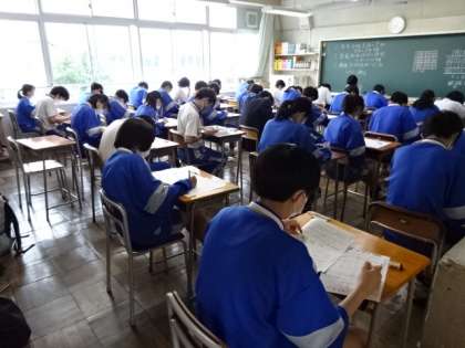 期末考査最終日になりました。1時間目の社会のテストです。3年2組。