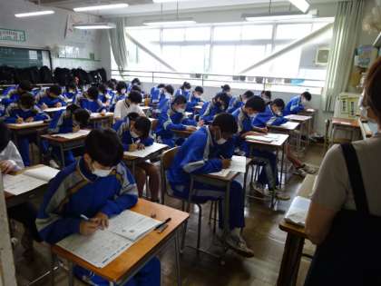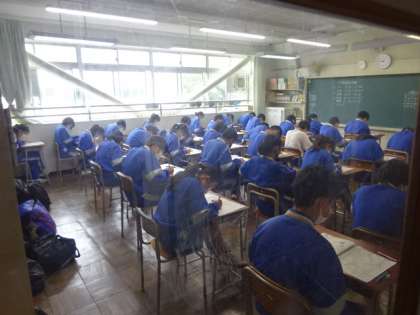 期末考査最終日になりました。1時間目の社会のテストです。3年3組。