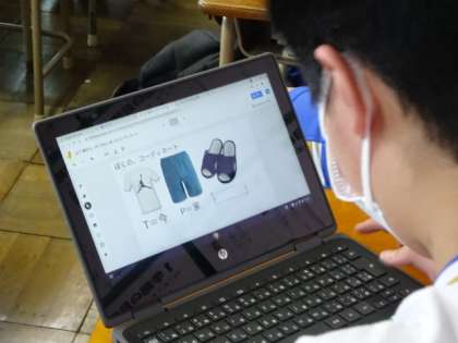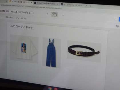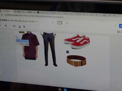 2年2組、家庭科。「僕、私のコーディネート」結構難しいです。