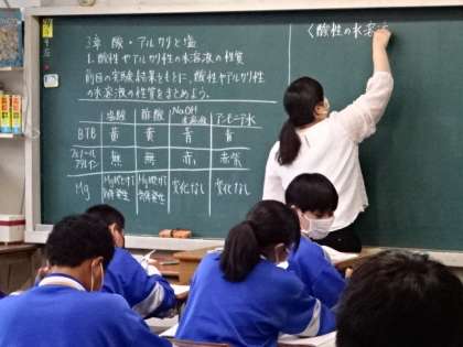3年3組、理科。「酸性やアルカリ性の水溶液の性質」