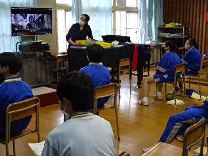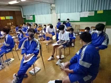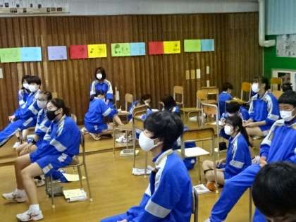 2年1組、音楽。「宿題発表 聴いたり歌ったりした曲」