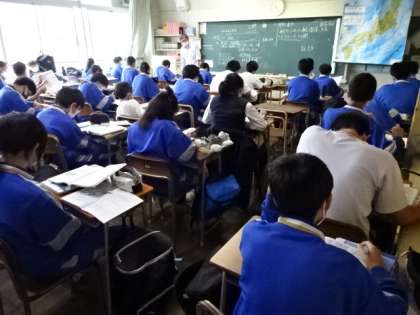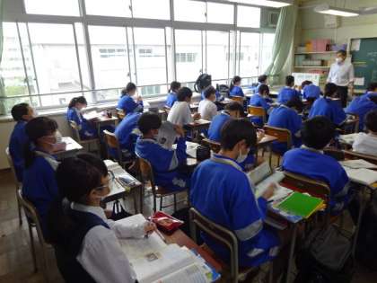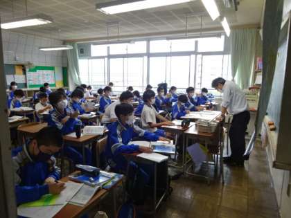 2年2組、社会。「日本各地を結ぶ交通・通信」