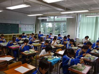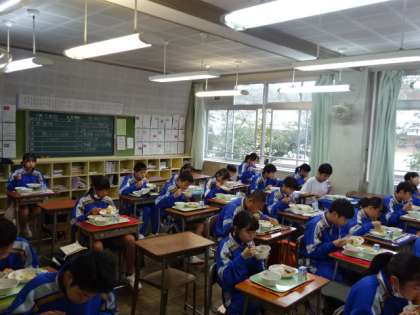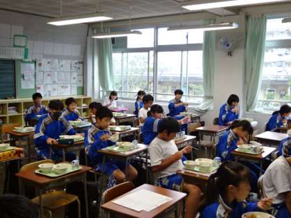 今日の給食、メニューは天丼です。1年生。