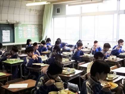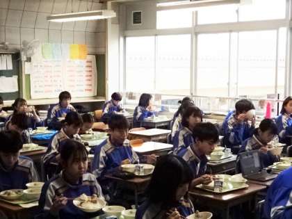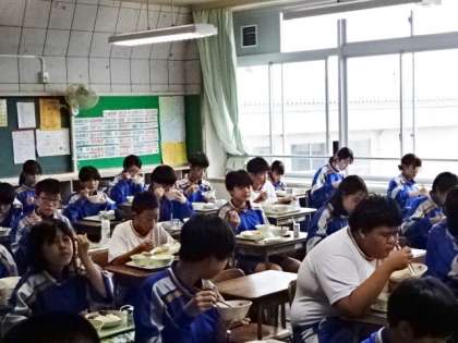 今日の給食、メニューは天丼です。2年生。