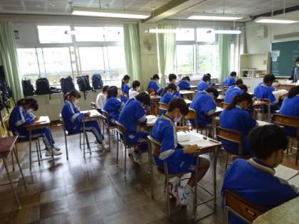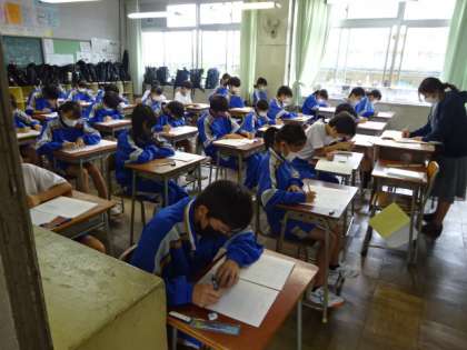 今日の1時間目は、全学年が八王子市学力定着度調査を受けました。1年2組。