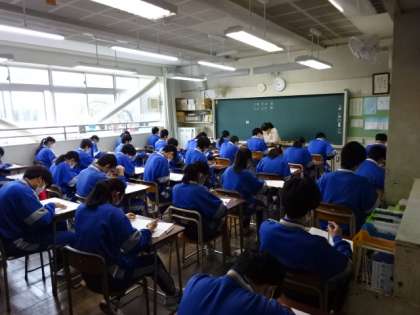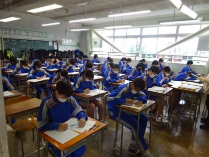 今日の1時間目は、全学年が八王子市学力定着度調査を受けました。3年3組。