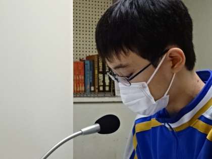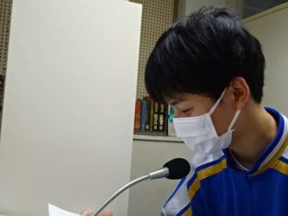 今朝は臨時の生徒会朝礼。生徒会・前期専門委員会の振り返りを、会長や専門委員長が話しました。