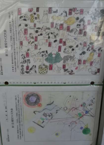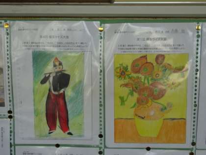 1学期の美術の授業で行った「模写クイズ大会」の優秀作品が、職員室前に掲示されています。どの作品も素晴らしい出来ですね。