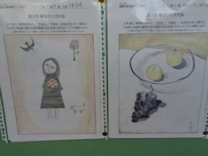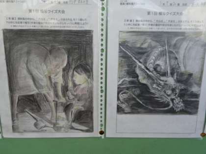 1学期の美術の授業で行った「模写クイズ大会」の優秀作品が、職員室前に掲示されています。どの作品も素晴らしい出来ですね。