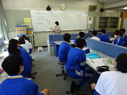 1年3・4組、数学。「等しい関係を表す式について学ぼう」