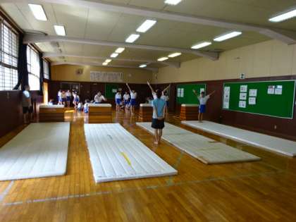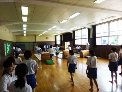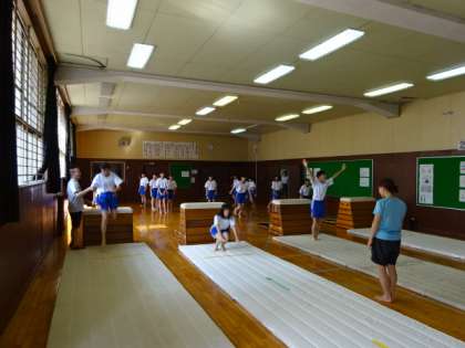 2年1・2組、体育女子。「抱え込み跳び」