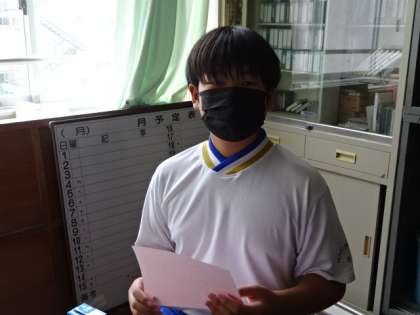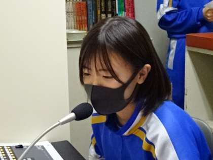 16日の生徒会役員選挙にむけて、昼の第1回政見放送です。会長候補と副会長候補が公約を発表しました。