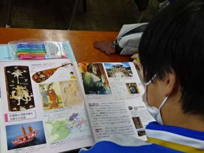 1年4組、社会。「大陸の影響を受けた天平文化」