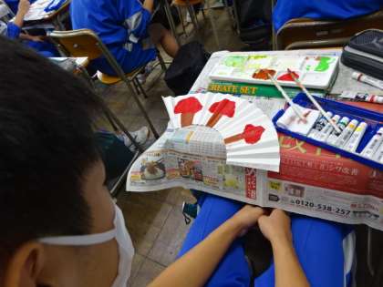 3年生が修学旅行の代替で「修学旅行オンライン体験学習」を行いました。型友禅、漆工芸、京扇子の制作に取り組みました。