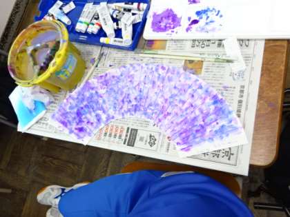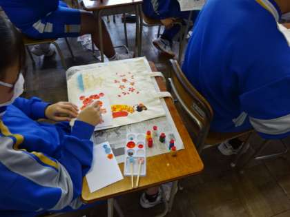 3年生が修学旅行の代替で「修学旅行オンライン体験学習」を行いました。型友禅、漆工芸、京扇子の制作に取り組みました。