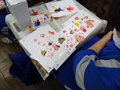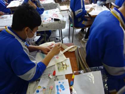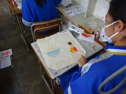 3年生が修学旅行の代替で「修学旅行オンライン体験学習」を行いました。型友禅、漆工芸、京扇子の制作に取り組みました。