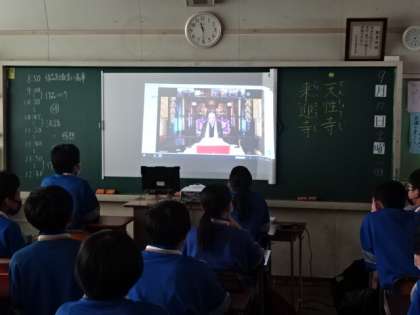 3年生が修学旅行の代替で「修学旅行オンライン体験学習」を行いました。今度は「法話」です。