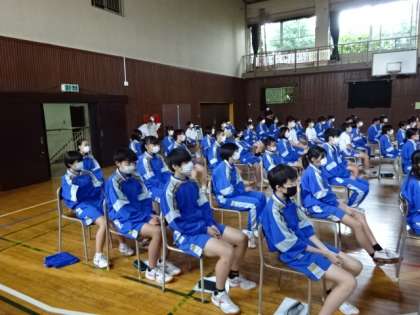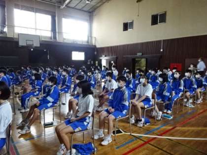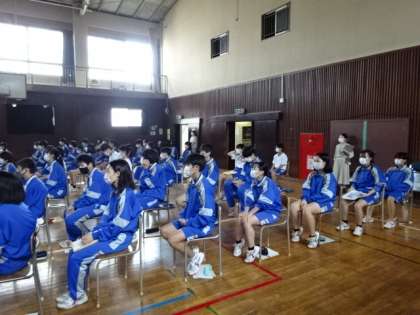 今年は「東京消防庁八王子消防署小宮出張所長」に学年ごとに講演していただきました。