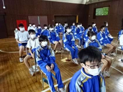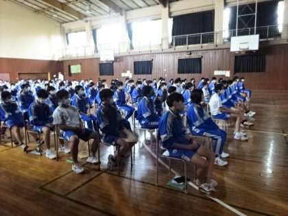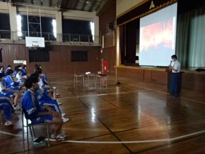 今年は「東京消防庁八王子消防署小宮出張所長」に学年ごとに講演していただきました。