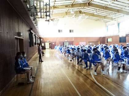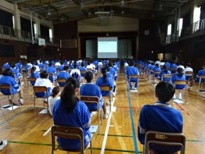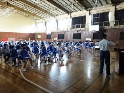 今年は「東京消防庁八王子消防署小宮出張所長」に学年ごとに講演していただきました。
