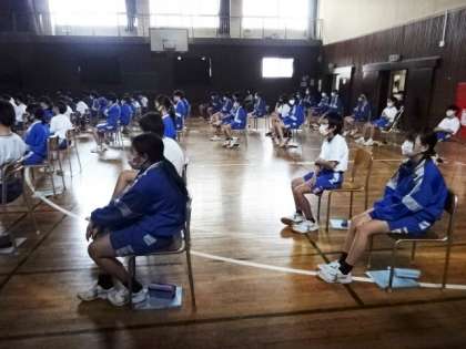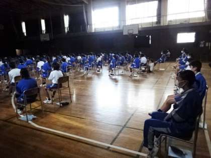 今年は「東京消防庁八王子消防署小宮出張所長」に学年ごとに講演していただきました。