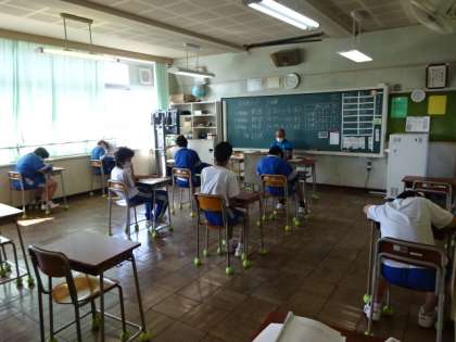 1時間目は英語のテストです。7組。