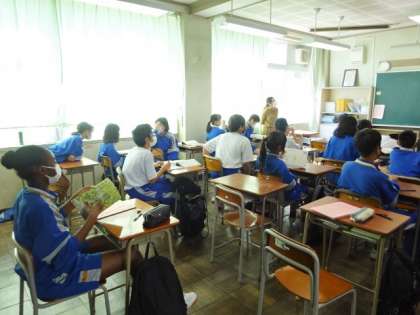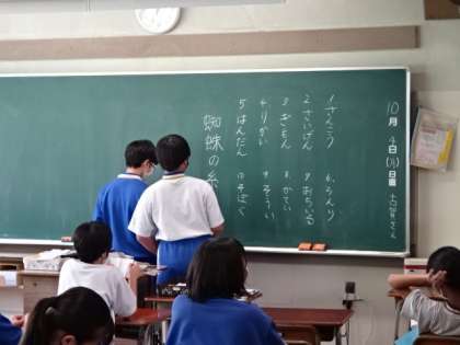 1年4組、国語。「蜘蛛の糸 芥川龍之介」
