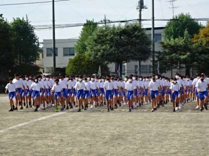 全校練習の様子です。全校生徒が一堂に会するのは、なんと1年8ヶ月ぶりです!